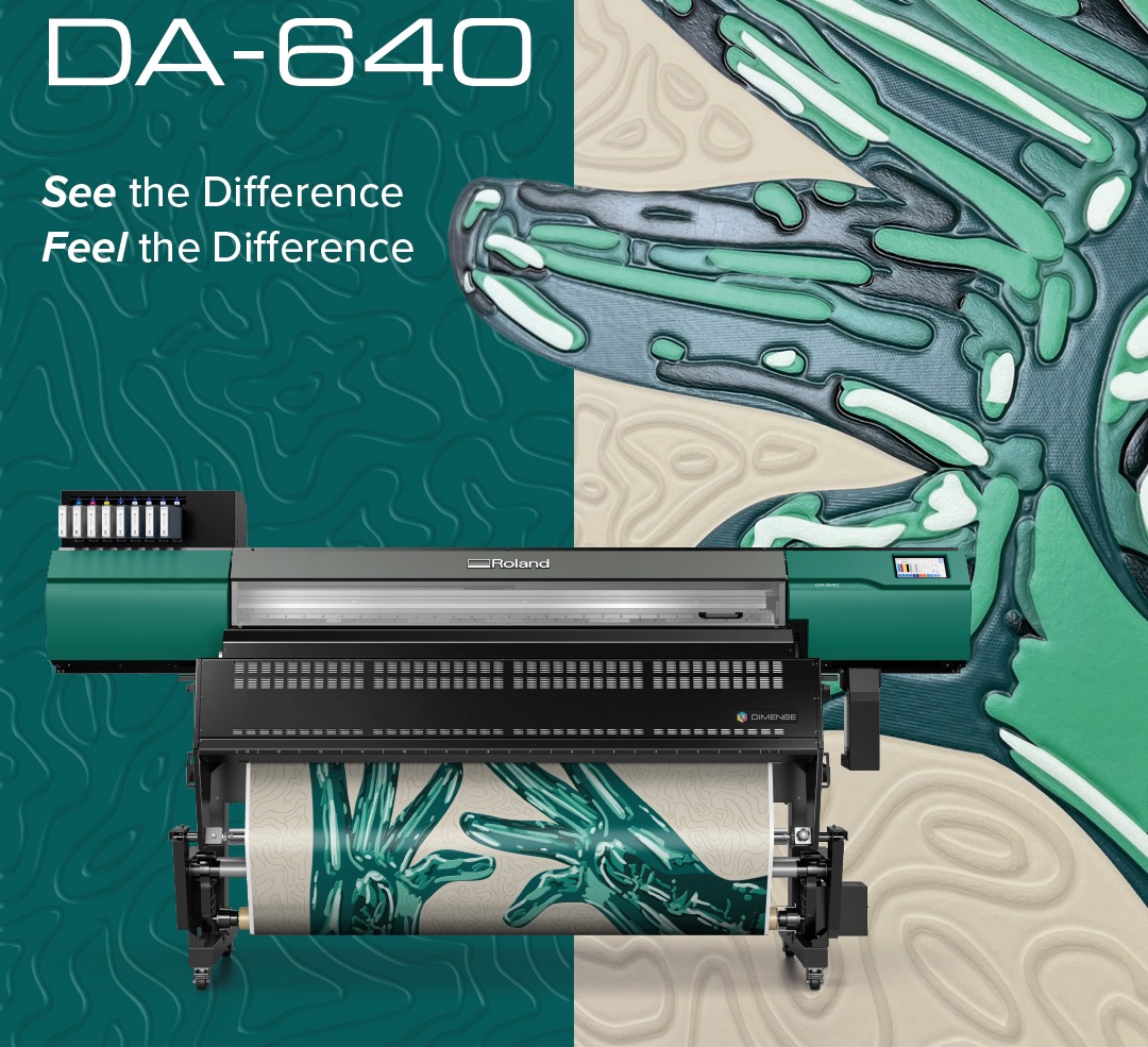 DIMENSEâ„¢ uses a special structural ink with CMYK to form raised effects wherever you choose. The DA-640 can produce embossed patterns up to 0.08 inches tall, giving your artwork added dimension and a unique tactile finish.